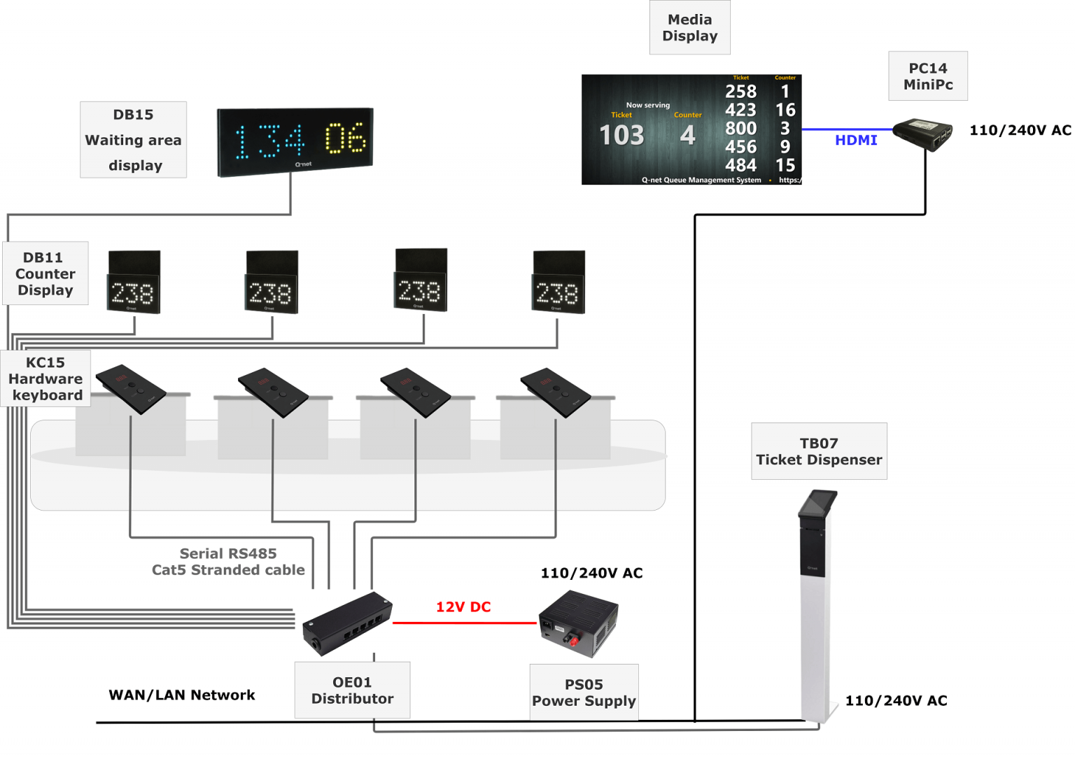 The Q-net Basic queue management system neither needs a PC, nor a system administrator surveillance.